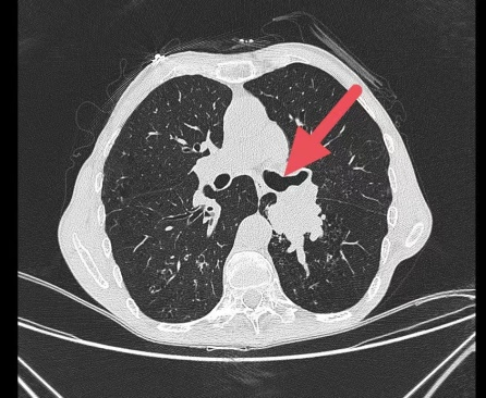患者莫先生(化名)1个月前开始出现咳嗽、咳痰,并逐渐出现胸闷、憋气,走路时呼吸困难,且症状进行性加重。曾在多所医院就诊,但效果都不理想。经过朋友推荐,莫先生慕名前往自治区南溪山医院寻求帮助。在进行诊疗时,莫先生表现出轻微活动后即出现显著的呼吸困难,且在未吸氧状态下,其末梢血氧饱和度低于85%(正常范围应超过95%)。通过肺部CT扫描及支气管镜检查,发现其左侧主支气管被新生物阻塞,伴随有肺不张和严重的肺气肿,肺功能评估结果极差。