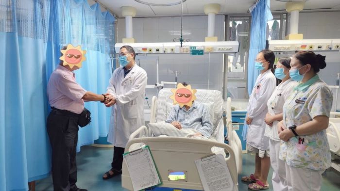 8月1日,简伯的哥哥赶到医院,科室主任、主管医生向他详细介绍了简伯病情,看到在医护人员精心治疗下且明显好转的简伯,简伯的哥哥对医护人员再三表示感激。因其家中有年迈的父亲需要照顾,不能在桂林停留太久,提出想尽快带简伯回台湾。