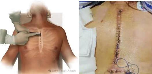 确实,传统的心脏手术的刀口在前胸正中,且往往都不小:上至脖子下方,下至腹部上方,一个成年人的心脏手术刀口有时可长达20厘米。手术因为要把胸部正中的那一块胸骨从正中间打开,手术结束后再用钢板或钢丝固定起来,对骨头也有一定的影响。因此,传统心脏手术的确是一个创伤比较大的手术,手术后恢复起来也会比较慢,一般3个月之内都不能参加体育活动和体力劳动。