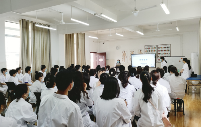 蒋文艳不仅是临床药师,同时兼任临桂临床医学院临床药学教研室秘书,为临床药学、药学本科、药物制剂本科、临床医学、全科医学等多个专业学生授课。将“育人为本”理念贯穿教学全过程,采用多样化教学方法,提高学生的学习积极性、自主学习能力和解决实际问题的能力。在教学过程中,也注重学生的身心健康发展,深得学生喜爱。作为团队指导老师之一指导学生参加并成功入选“全国大学生中医药宣讲团”——菁华中医药志愿服务团。