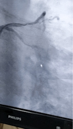 该患者为一名70岁高龄男性患者,9年前,因出现活动后胸闷、胸痛不适到医院就诊,行冠状动脉造影提示严重冠状动脉三支病变,因考虑血管病变严重,该院邀请了外院知名专家为该患者行冠状动脉支架植入术,但因患者右冠脉为血管慢性闭塞病变且钙化严重,处理右冠闭塞病变失败,后选择处理了左前降支及回旋支严重狭窄病变,共植入支架4枚,术后患者胸闷胸痛症状一定程度上缓解,但患者爬3楼以上楼梯仍可诱发心绞痛发作,近1年多来胸闷胸痛症状加重,一般步行300米左右可诱发心绞痛症状发作,经亲友介绍,抱着试一试的心态,来到了桂医二附院心血管内科二病区就诊。