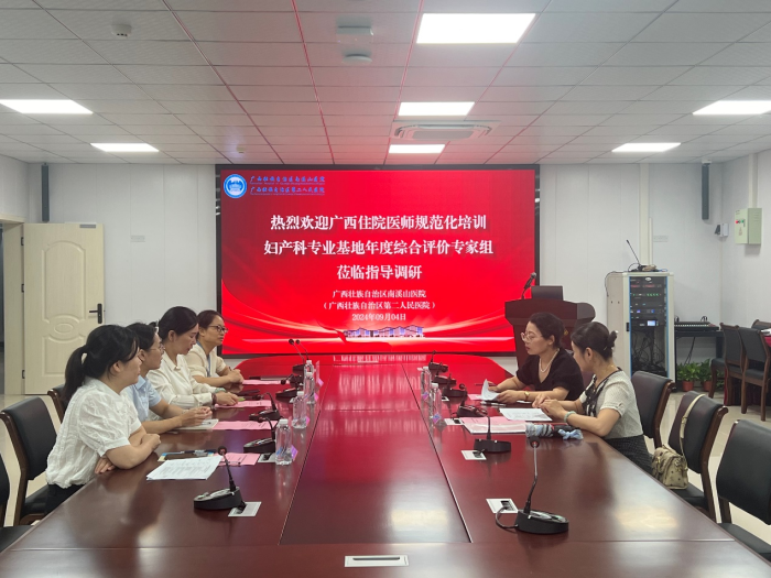 为深入强化住院医师规范化培训工作管理水平,夯实基地建设内在基础,提升基地教学质量,以应对即将到来的国家级住培基地评估。9月4日上午,广西壮族自治区住培专家团队对自治区南溪山医院妇产科住培专业基地进行全面审查。此次专家组成员包括桂林医学院附属医院产科主任李凯主任,桂林医学院附属医院产科副主任黄芯主任。自治区南溪山医院教学管理科赵红丽副科长、教学管理科刘中伟副科长、妇产科基地负责人张丽武,基地教学主任莫新宇、基地教学秘书黄春燕等成员等出席迎检会议。