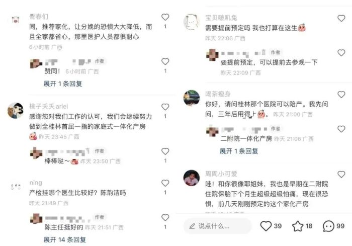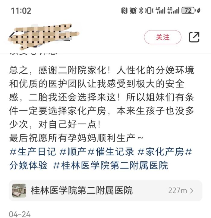 “二附院家化产房非常nice,主打省心”“二附院家化产房体验真的很好,医生护士都很温柔很有耐心的”推荐家化,可以陪产剪脐带,非常有纪念意义"……桂医二附院家化产房赢得了社会广泛赞誉。许多产妇纷纷在小红书、论坛、抖音等网络平台分享分娩经历并点赞家化产房服务。