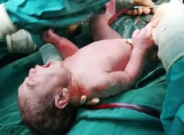 产科负责人陈韵洁现场指挥,各科室医护人员迅速到位,大家分工明确、配合默契。为避免胎先露压迫脐带,医护人员跪在地上始终保持上推胎先露的动作。12分钟后,“哇……”的一声啼哭打破了手术室的紧张气氛,让所有人悬着的心都放了下来,母子平安。