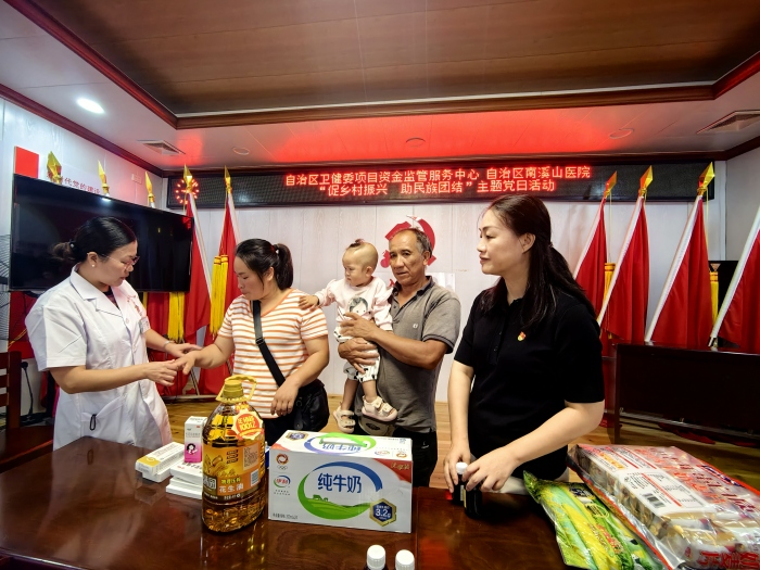 9月14日,自治区卫生健康委项目资金监管服务中心党支部与南溪山医院行政后勤第四、第七党支部到龙胜县泗水乡泗水村联合开展“促乡村振兴,助民族团结”主题党日活动,通过帮扶慰问、送医送药,与脱贫户共话民族团结,力促乡村振兴。