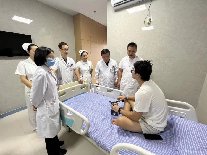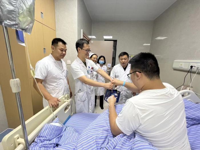 9月16日,陈锋主任手捧精心挑选的月饼与鲜果,带领护长沈寿林、苏进方及病房诊疗组长何跃等医护人员,逐一探访了公共应急救治中心综合病区的每一位住院患者。每到一处,陈主任都以和煦的笑容和亲切的话语,关切地询问患者的病情恢复情况,耐心解答患者及家属的每一个疑问,并鼓励他们保持乐观的心态,积极配合治疗,以期早日康复出院,与家人共度美好时光。