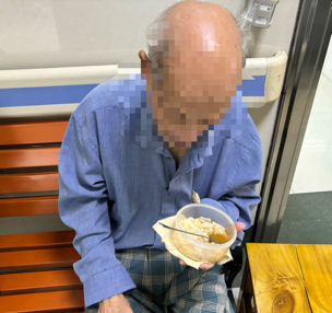 经过一段时间的治疗,覃爷爷成功拔除鼻胃管,实现了完全自主经口进食。随着吞咽功能的恢复,覃爷爷也变得开朗起来。在运动治疗、作业治疗的助力下,覃爷爷的运动功能也由刚入院时的步行需搀扶,改善到在监督下可进行社区性步行,生活自理能力有了一定的提升。