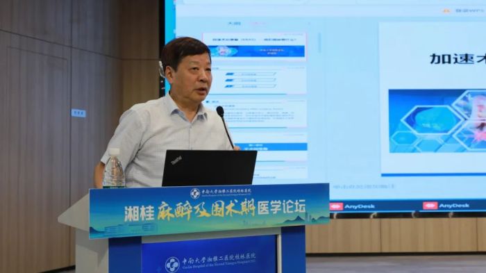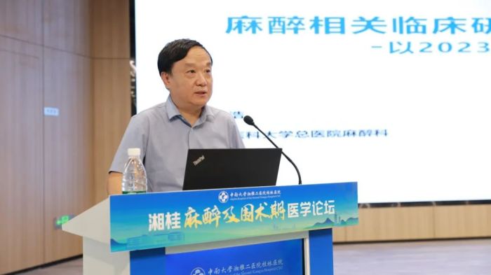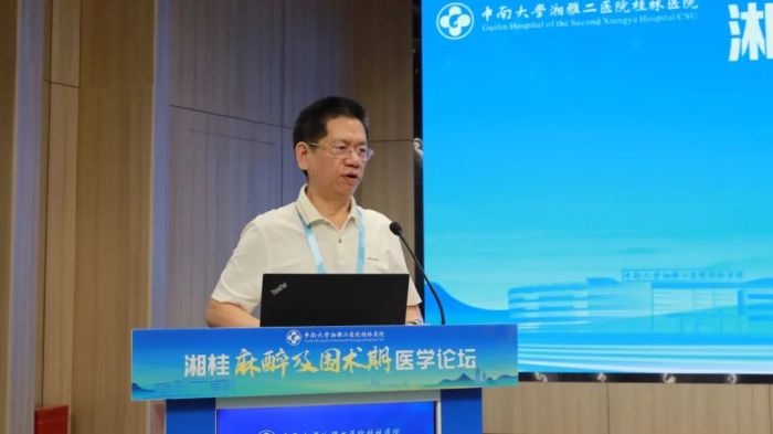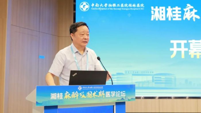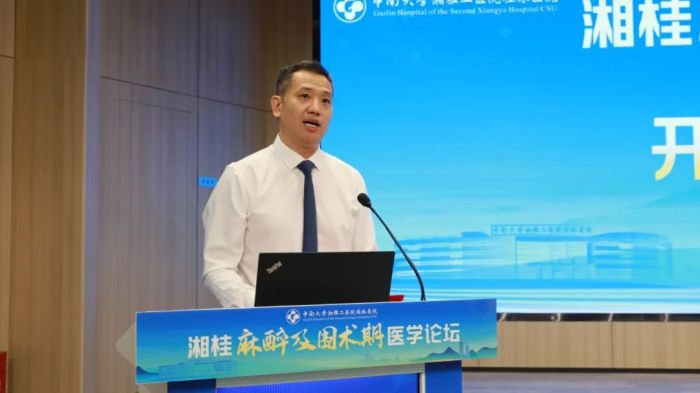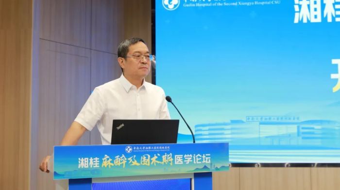 本次医学论坛,由中南大学湘雅二医院桂林医院副院长曹丽君主持。中华医学会麻醉学分会主任委员俞卫锋、广西医学会麻醉学分会主任委员潘灵辉、湖南省医学会麻醉学分会主任委员欧阳文、天津市医学会麻醉学分会(侯任主委)余剑波、桂林市卫生健康委员会副主任麦浩,中南大学湘雅二医院桂林医院党委书记、院长刘先领等众多麻醉领域的专家及领导应邀出席。