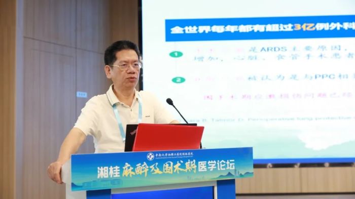 广西医学会麻醉学分会主任委员潘灵辉致辞
