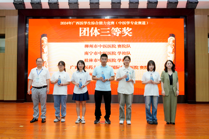 9月13-14日,2024年广西医学生综合能力竞赛(中医学专业赛道)在柳州市举行,全区17个临床实践教学基地共29支队伍参赛。桂林市中医医院(学校队)代表队在此次竞赛中表现出色,经过2天赛程的激烈角逐,桂林市中医医院的实习生们凭借扎实的专业知识、精湛的临床技能和良好的团队协作精神,赢得了评委和观众的一致好评,从29支参赛队中脱颖而出,最终荣获团体三等奖。