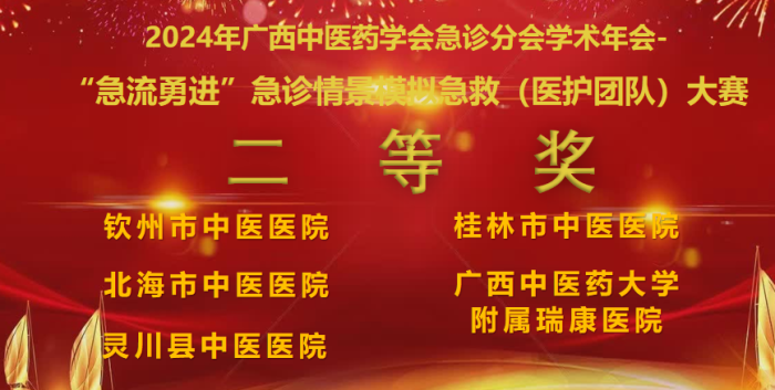在9月13日-15日举行的2024年广西中医药学会急诊分会学术年会上,桂林市中医医院急诊科医护人员凭借其出色的综合表现与扎实的专业能力,在比赛中脱颖而出,荣获“急中生智”急危重症病例汇报大赛一等奖、“急流勇进”急诊情景模拟急救(医护团队)大赛二等奖。此次年会不仅是广西地区中医药急诊领域的一次盛会,更展现了各医疗机构急诊救治水平。