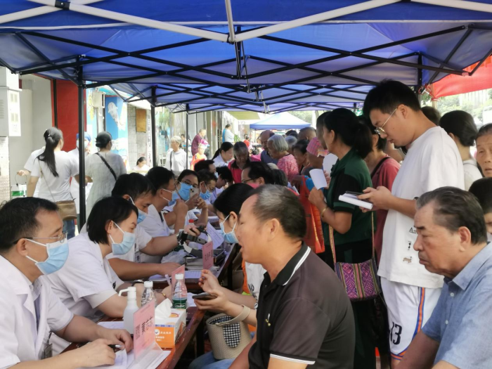 活动现场排队等候就诊服务的患者