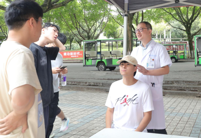 脊柱骨病外科科教副主任熊宇正在向学生们科普如何保护颈椎