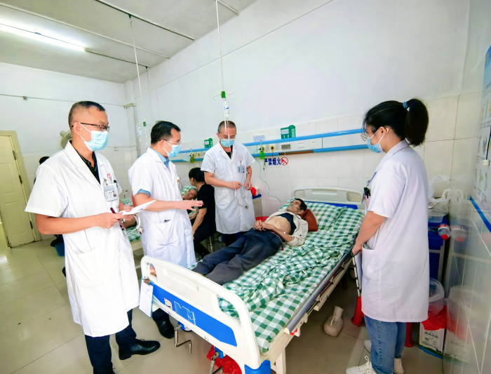 疑难危重病例查房环节则是此次业务指导活动的另一大亮点。南溪山医院的老年病科主任李贵宇、周国庆主任医师、罗春妮护士长以及全科医学科主任黄志东、肿瘤内科一病区主任扈鑫荣深入荔浦市中医医院的病房,对住院疑难危重患者进行了详细的病史询问、体格检查,与医护人员一起对患者的治疗方案、护理计划进行讨论,他们凭借丰富的临床经验和专业知识,为患者制定了更加科学合理的治疗计划,、这不仅提升了荔浦市中医医院的诊疗质量,也为医护人员树立了良好的学习榜样。
