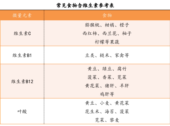 点击放大,查看常见食物含维生素参考表