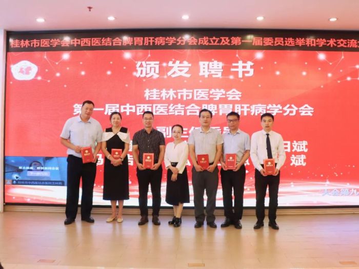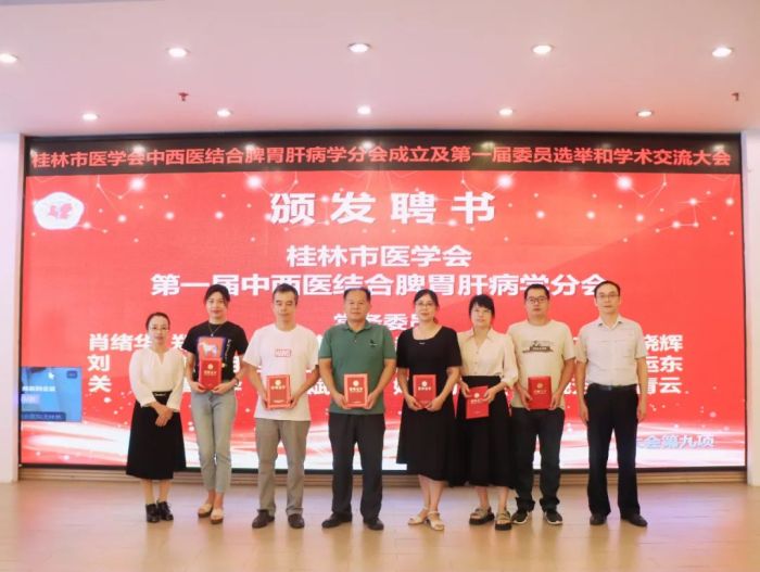 会上选举产生了第一届委员会,桂林市中西医结合医院脾胃病科主任沈林艳当选首届主任委员。薄晓通、戴劲等八人当选为副主任委员,葛正息担任秘书。桂林市医学会秘书长闫芳、桂林市中西医结合医院副院长杨景毅、桂林市中西医结合医院脾胃病科主任沈林艳为委员会成员们颁发了任职聘书。