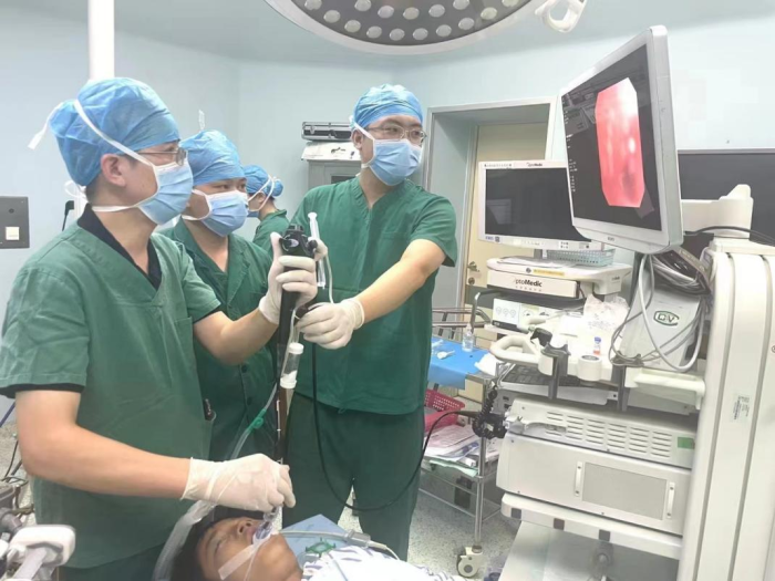 自治区南溪山医院呼吸与危重症医学科二病区主任屈东明博士第一时间了解乐乐的情况,考虑是异物卡在气管上端,随时有脱落导致窒息可能,情况十分危急,立即联系急诊科救护车前去接小孩,同时联系麻醉科、手术室安排紧急手术,次日凌晨2点乐乐经过医院医务人员检查和初步评估后立即送至手术室,为乐乐进行手术。
