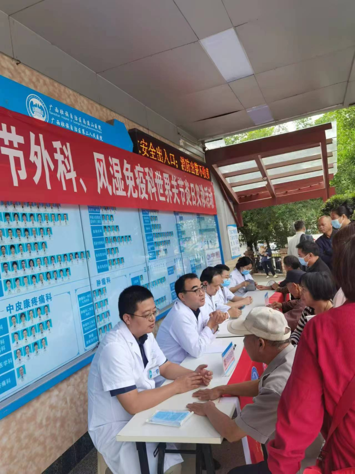 当天上午,为推动敬老爱老社会风尚,宣传普及关节炎知识,提高老年人健康意识,风湿免疫科牛国栋博士、关节外科陈东旭博士带领医护团队进行义诊。