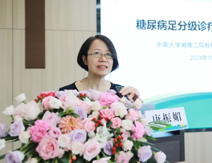 授牌仪式结束后,现场聚焦糖尿病足管理及其分级诊疗、精准化治疗等核心议题,为参会人员呈现了一场理论与实践交融、深度与广度并存的学术盛宴。前海人寿广西医院颜晓东教授带来《基层医院糖尿病足管理规范——2019糖尿病足基层筛查与防治专家共识解读》,分享了宝贵的临床经验和研究成果;中南大学湘雅二医院桂林医院代谢内分泌科行政主任唐振媚带来《糖尿病足分级诊疗的必要性和可行性探讨》、血管外科执行主任李鑫带来《糖尿病足血管病变腔内治疗精准化技术和器械新思路与病例分享》;全州县人民医院副主任医师张林荣带来《基层糖尿病足治疗病例》,分享了糖尿病足创面的处理。与会专家以多学科的视角,多层次地剖析了糖尿病足的基层规范治疗策略与创新治疗手段,让与会人员进一步了解了糖尿病足创面处理的重点、难点,对糖尿病足防治的新进展、新方法有了更全面和深刻的认识。
