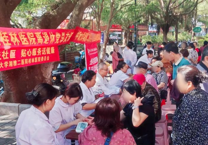 10月11日,桂林市观音阁社区举行了别开生面的义诊及垃圾分类宣传活动。活动的主角是27名中南大学湘雅二医院桂林医院的退休医务人员——一群满头银发却精神矍铄的老人。他们既是重阳节的参与者,也是自发组织、为百姓提供义诊服务的退休职工。他们以实际行动诠释了“老有所为,老有所用”的深刻内涵,用医术和爱心继续守护着社区居民的健康。