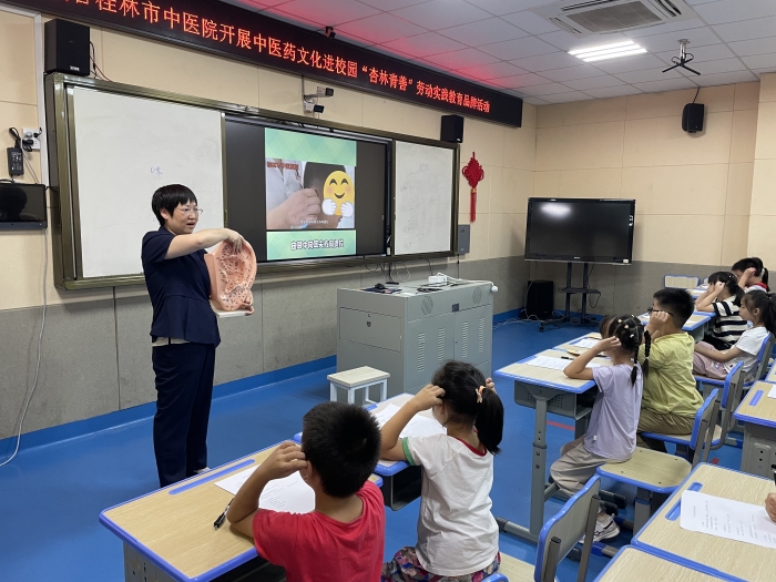 为传承和弘扬中医药文化,培育青少年文化自信和健康素养,9月26日,桂林市中医医院党办监察宣传统战群团联合党支部、针灸学会党支部、乳腺科党支部、病理输血心电诊断心血管病外治康复联合党支部走进崇善小学,开展“杏林青善”中医药文化进校园活动。
