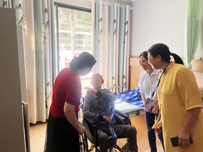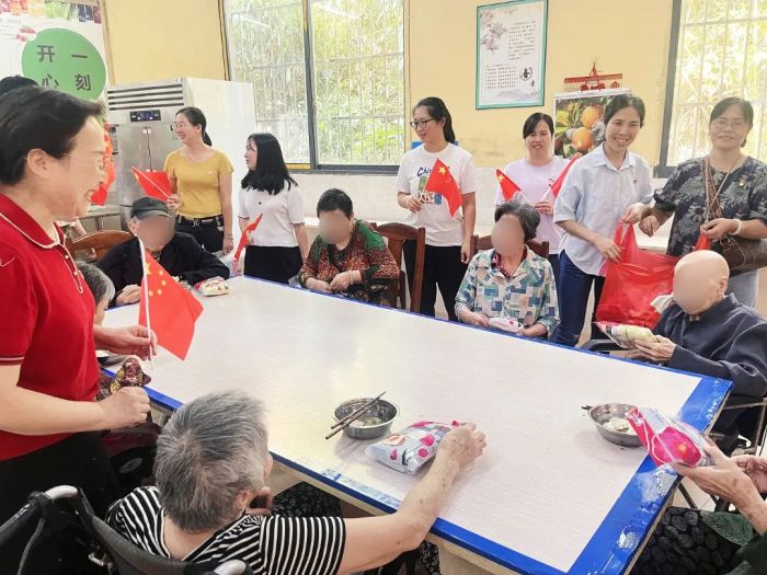 在养老院的工作人员的带领下,党员们参观了养老院,为老人们分发牛奶、生活用品等,与老人们交流谈心。党员们还向工作人员详细了解了老人的生活及健康情况,并为他们测血糖、量血压。根据测量结果,医务人员细心询问老人饮食和用药情况,并给予具体的用药指导和健康宣教。
