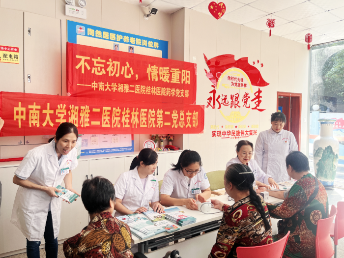 九九重阳节是中华民族的传统节日,尊老、敬老、爱老是中华民族引以为傲的传统美德。10月11日上午,中南大学湘雅二医院桂林医院药学党支部、第二党总支部及健康管理中心党支部的党员们走进养老院,开展了“不忘初心 情暖重阳”重阳节慰问活动,为老人们送上了节日的祝福。