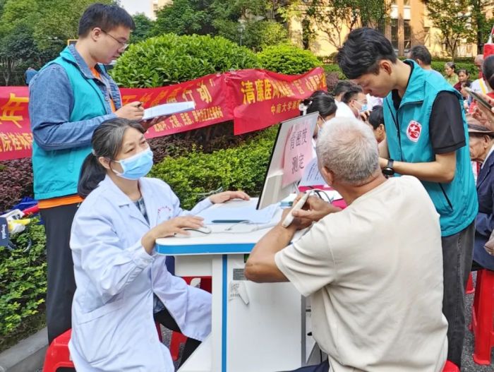 金秋送爽,今又重阳,为弘扬中华民族尊老、敬老、爱老、助老的传统美德,重阳节当天,中南大学湘雅二医院桂林医院联合兴美社区及社区物业,通过品油茶等活动为老年人送上节日的祝福,并在社区内开展了一场主题为“清廉医风拂基层 医心为民护健康”大型义诊活动,营造关爱老年群体的社会氛围。