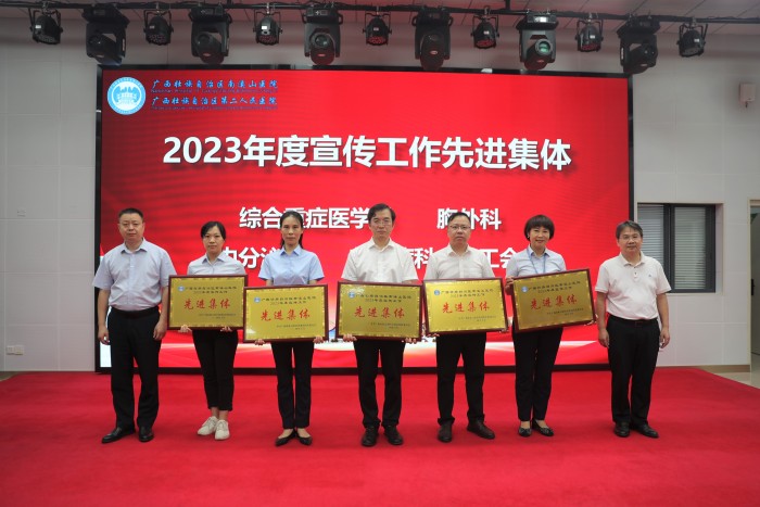 经医院党委研究决定,对在2023年度宣传工作中表现优异的5个优秀集体和10名优秀通讯员予以表彰。会上,医院全体党政领导班子为他们进行了颁奖。