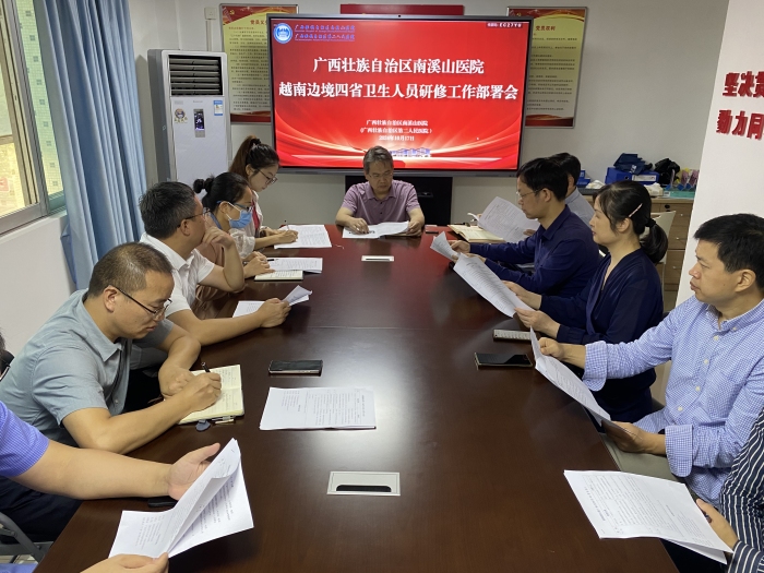 为深化与越南边境四省(谅山省、高平省、河江省、广宁省)在医疗卫生领域的友好合作关系,自治区南溪山医院积极响应自治区卫健委的工作部署,将于近期接收两批来自越南边境四省的医疗卫生人员到医院进行研修交流。10月17日,南溪山医院组织召开了越南边境四省卫生人员研修工作部署会议,党委书记柳宏林,党委委员、副院长胡长付,医院办公室、教学管理科、医务部、护理部、总务科等相关临床科室的负责人参加会议。