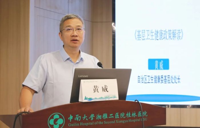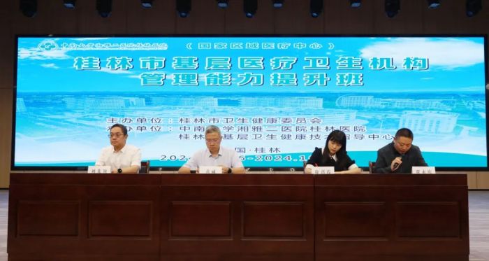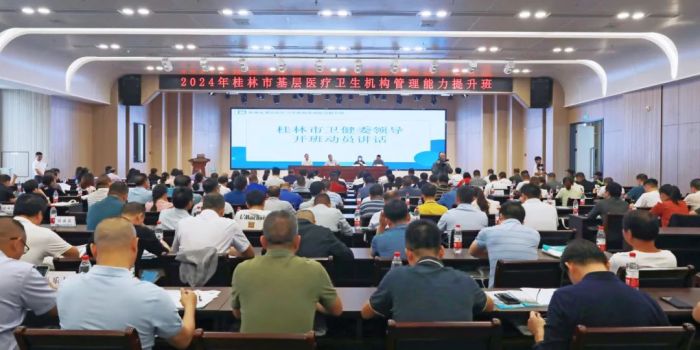 为不断推进桂林市基层医疗机构的服务能力建设,提升基层医疗卫生机构管理人员能力水平,10月17日,由桂林市卫生健康委员会主办、中南大学湘雅二医院桂林医院承办的桂林市基层医疗卫生机构管理能力提升班在临桂院区顺利开班。自治区卫生健康委基层处处长黄威、市卫生健康委员会副主任徐召霞,中南大学湘雅二医院桂林医院党委书记、院长刘先领参加开班仪式。来自全市各县区的乡镇卫生院、社区卫生服务中心主要负责人,各基层医疗卫生机构相关科室负责人、业务骨干等200余人参加培训。