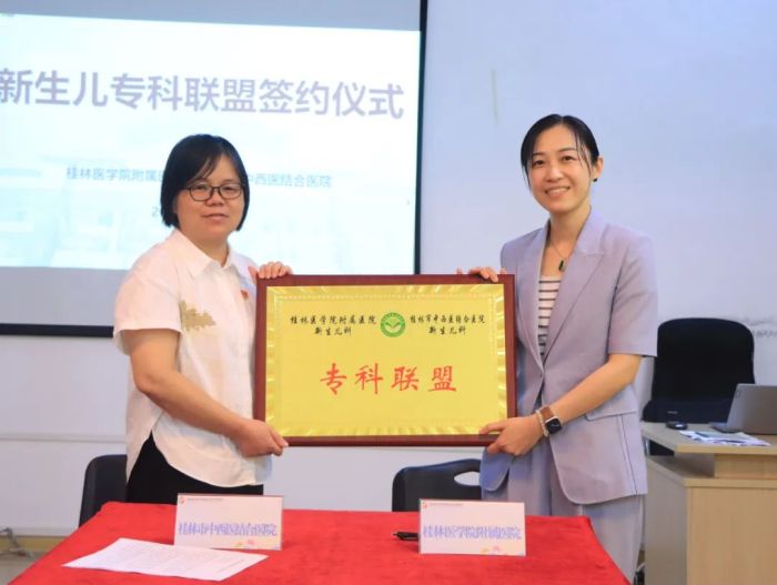 为深化医药卫生体制改革、推动医疗卫生事业发展,提升新生儿的救治水平。近日,桂林医学院附属医院与桂林市中西医结合医院签订新生儿专科联盟协议并授牌。桂林医学院附属医院新生儿科副主任谭媛一行、桂林市中西医结合医院医务科副科长于志华、大儿科主任黄远莲及新生儿科部分医务人员参加了签约仪式。
