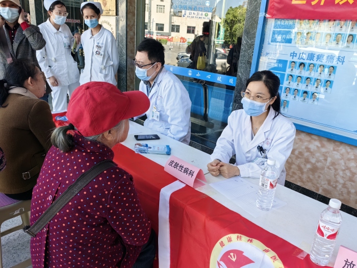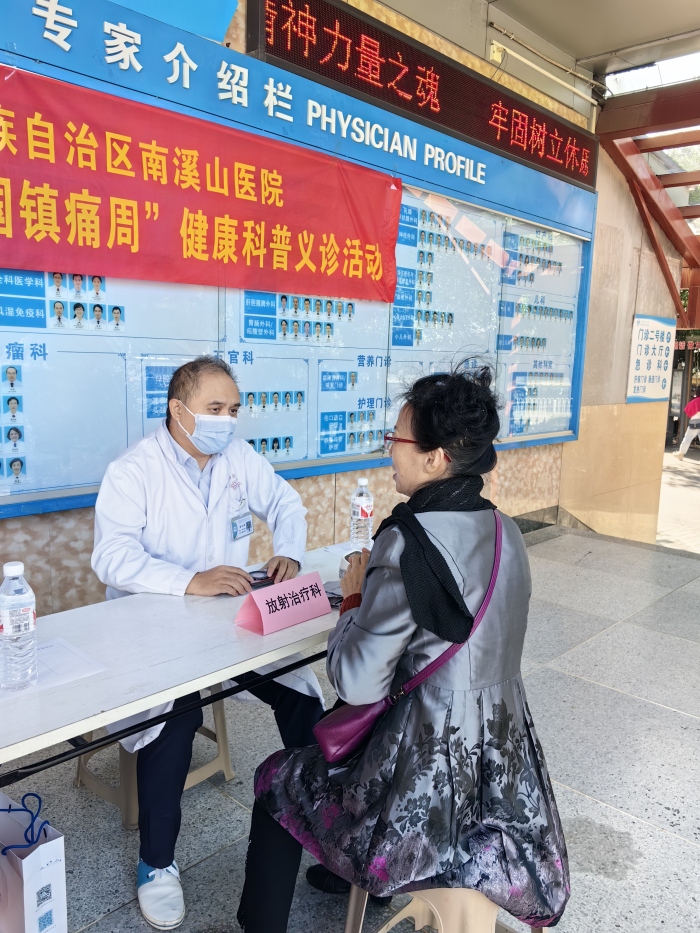 10月23日上午,广西壮族自治区南溪山医院疼痛科联合皮肤科性病科、放射治疗科在门诊大厅举行“世界镇痛日、中国镇痛周”健康科普义诊活动。