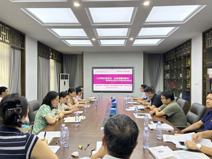 活动中,自治区纪委监委驻广西师范大学纪检监察组纪检监察室主任梁毅围绕“以案明纪,以纪正行”的主题,为全体党员上了一堂思想深刻、内容丰富的纪律教育党课,梁毅主任通过列举身边典型案例,结合《中国共产党纪律处分条例》,带领党员们深入学习和领悟党的纪律规矩。随后,全体党员观看警示教育案例纪录片,并发表观后感,交流心得体会。