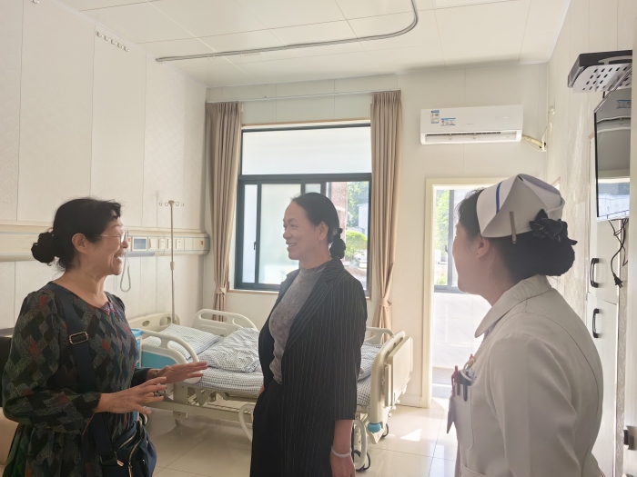 会后,调研组实地参观了医院离退休职工活动中心、特需医疗病区等场所,深入了解相关设施的配备和使用情况,并上门看望了医院离休干部。