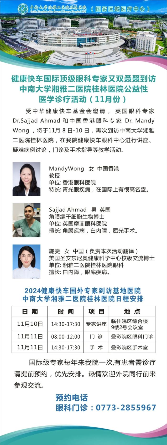 可预约门诊、手术!健康快车顶级眼科专家将到访中南大学湘雅二医院桂林医院