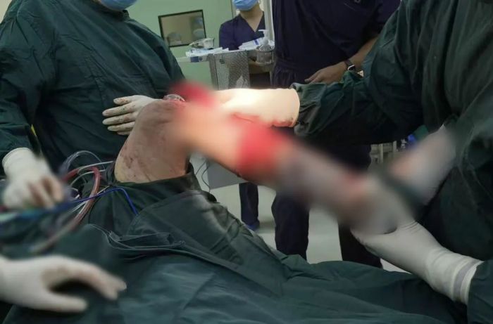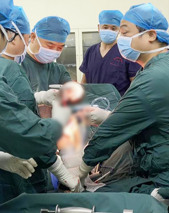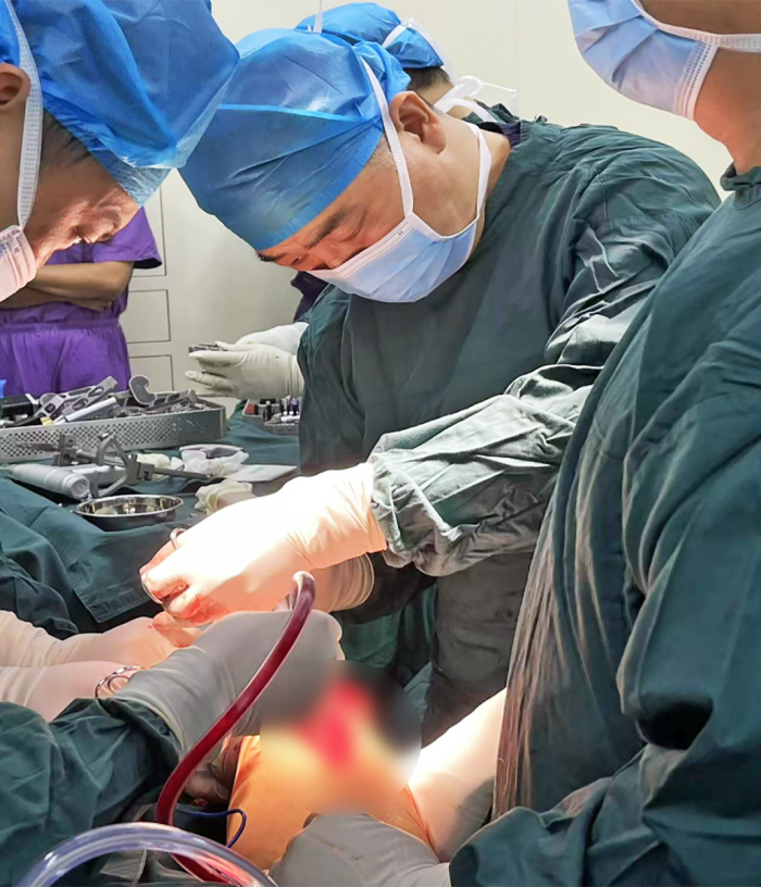 手术由中南大学湘雅二医院骨科主任兼桂林医院骨科主任、国内知名骨科专家毛新展教授主刀,桂林医院副院长曹丽君为患者实施精准麻醉,桂林医院骨科一病区(关节、脊柱)行政主任易平及骨科医师共同协作完成。