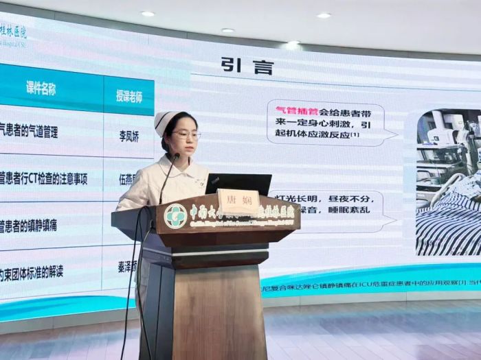 全科医疗科护士长唐娴分享了《气管插管患者的镇痛镇静管理》相关知识,将镇痛镇静相关专家共识解读与气管导管患者护理相结合,注重人文关怀,提高带管患者舒适度及依从性,从而减少非计划性拔管的发生,指导临床护理的规范化实施。