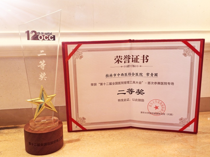 10月31日至11月3日,由国家卫生健康委员会医政司指导,清华大学医院管理研究院主办,浙江省医院协会承办的第十二届全国医院管理工具大会在浙江杭州举办。桂林市中西医结合医院护理质量改善项目品管圈“常青圈”——基于健康行动过程取向理论的中西医结合护理提高肠镜检查患者肠道准备合格率,成功入围决赛并经过激烈的角逐,荣获首次参赛医院专场“二等奖”。