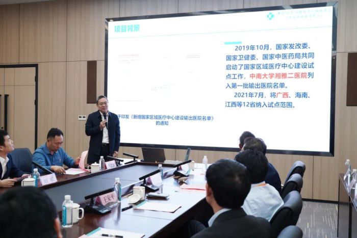 参观结束后,专家一行共同参加座谈会。会上,刘先领院长首先对各位专家的莅临表示欢迎,并详细介绍国家区域医疗中心建设进展。他指出,作为广西首个获批建设的国家区域医疗中心,医院的运行旨在提升区域医疗服务水平,助力大健康产业的繁荣发展。