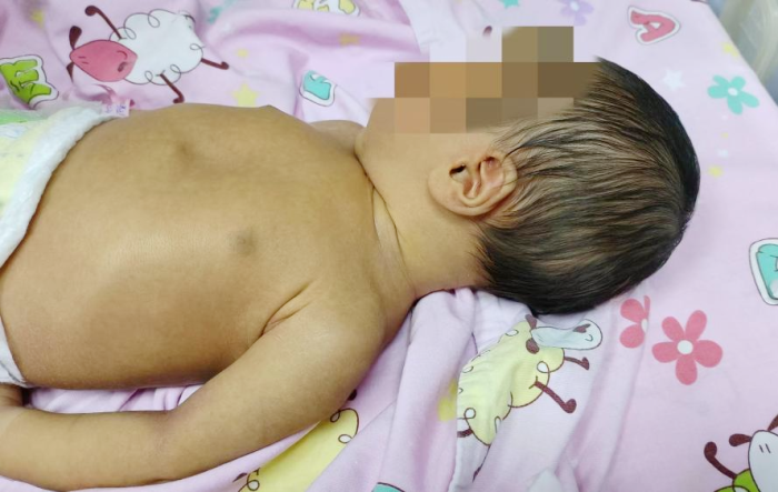 新生儿乳腺肿大常常发生于出生后的4~7天,男婴女婴均可发生。新生儿的乳腺肿大一般是对称性肿大,如蚕豆到核桃大小,触之硬块状,局部无红肿,皮温不高。新生儿乳腺肿大随着来自母体雄性激素的逐渐消失,乳房肿胀现象也会逐渐恢复正常,多在2~3周后消退。宝爸宝妈请注意,切忌挤压,以免感染。