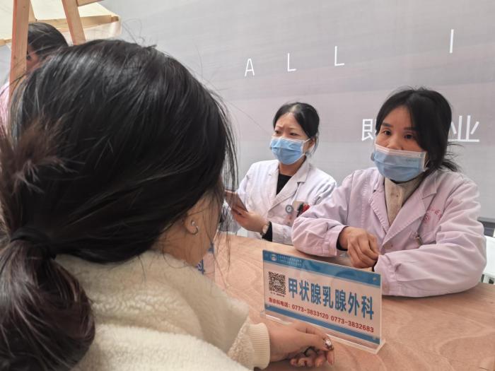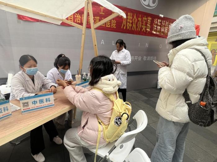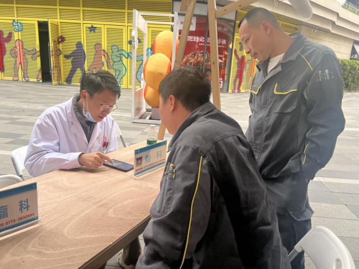 现场义诊则是在万象城街区开展,来自南溪山医院心血管内科、皮肤科、风湿免疫科、甲状腺乳腺外科、骨科、肿瘤科、中医科、眼科的医疗专家们为桂林市万象城的员工、商户、市民等前来问诊的人群提供了医疗问诊,还贴心地为职工们提供了中医治未病医疗服务,免费为市民贴耳穴治未病及进行血压、血糖等项目的免费测量服务。