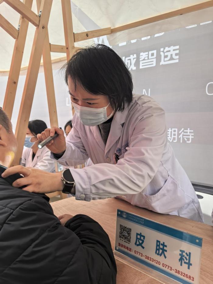 皮肤科主任刘懿为市民进行问诊检查