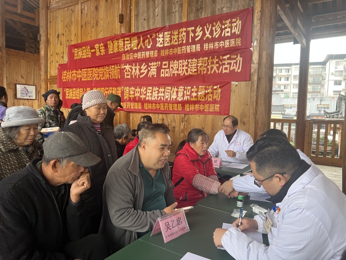 12月10日,自治区中医药管理局、桂林市中医药管理局、桂林市中医医院联合龙胜县中医医院赴龙胜县乐江镇开展“民族团结一家亲 健康惠民暖人心”送中医药下乡义诊活动。该活动也是桂林市中医医院“杏林乡满”党建品牌联建帮扶活动的第四站。