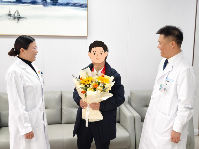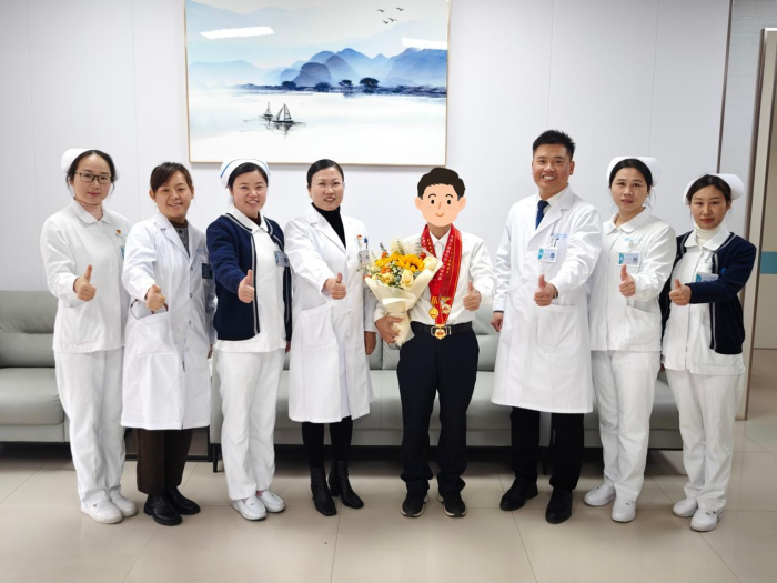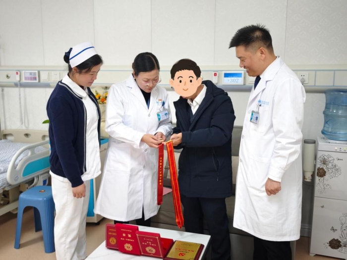 为了回馈这位劳模病友的深情厚谊,特需医疗病区特别安排了一场简单而隆重的出院仪式。仪式上,自治区南溪山医院副院长唐芬代表全体医护人员向劳模同志表达了深深的敬意和对其康复的祝福,并亲手为他送上了一束象征健康与祝福的鲜花。这束鲜花不仅承载着医护人员对劳模同志的美好祝愿,更体现了医患之间深厚的情感纽带和相互信任。