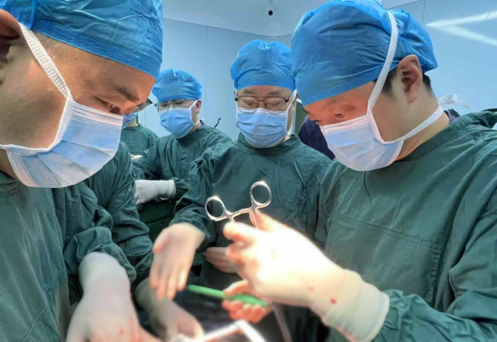 但就在讨论当天,颜女士面部和双上肢水肿情况进一步加重,甚至出现了颅高压体征。梁恒星主任连夜奔赴长沙,邀请“金刀奖”得主、首届湘雅名医、前湘雅二医院胸心血管外科主任胡建国教授赴桂指导。在颜女士入院第六天,梁恒星主任和手术团队在周六的上午加班为颜女士进行急诊手术。