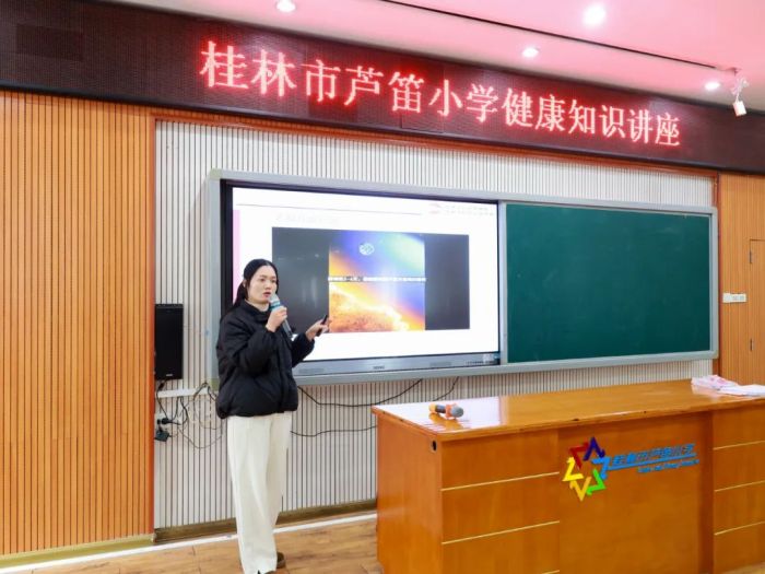 为引导学生正确对待青春期生理、心理的变化,让处于青春期的学生及时了解青春期健康知识,树立健康向上的良好心态,增强自我保护意识和健康意识,12月11日下午,桂林市妇幼保健院妇女保健科邓月秀和生殖医学中心廖相两名临床专家应邀来到桂林市芦笛小学,为该校五年级的240余名学生开展青春期健康知识讲座。