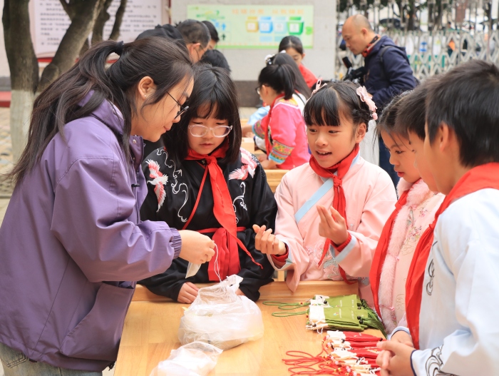 现场还特别设置了中医专家健康咨询区、中药香囊和艾条制作体验区、中医药方书写展示以及中药养生茶饮品鉴等互动环节。学生们热情高涨,纷纷动手尝试,有的认真地挑选药材,亲手缝制香囊;有的则在专家的指导下,学习如何正确使用艾条进行保健。学生们沉浸其中,直观感受到了中医药在日常生活中的独特魅力。