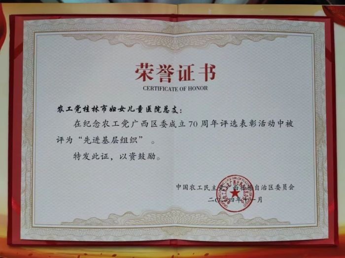 农工党桂林市妇女儿童医院总支获评“先进基层组织”