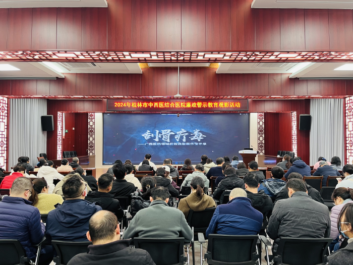 12月26日,桂林市中西医结合医院组织观看广西医药领域腐败典型案件警示录《刮骨疗毒》。医院领导、中层干部、科室主任等150余人参加活动。